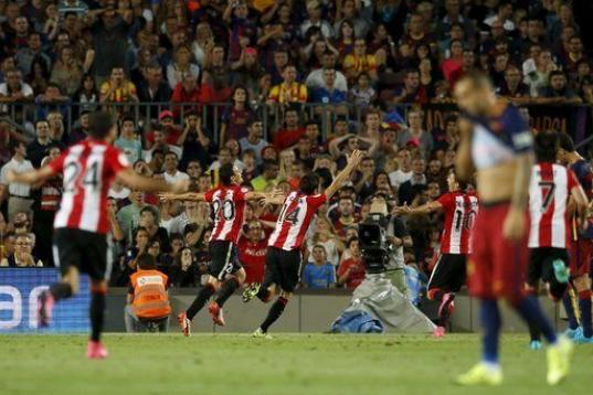 Histórico triunfo del Athletic en uno de los clásicos del fútbol español ante el Barcelona y con Aduriz como gran protagonista. Los de Valverde se han impuesto claramente en los dos partidos de la final de la Supercopa de España haciendo un fútbol sobrio pero siendo superiores a su rival casi en los 180 minutos que ha durado.