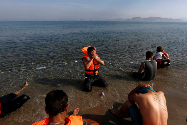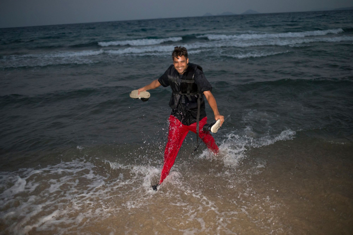 La satisfacción de haber logrado el objetivo, el de alcanzar una tierra que al menos les proporcione algo de esperanza, es lo que hace sonreír a este hombre, recién llegado a la isla griega de Kos.