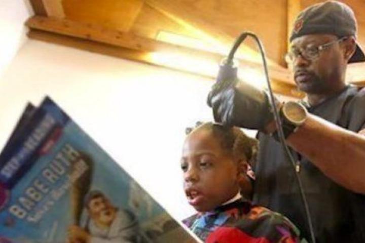 El peluquero que corta el pelo gratis a los niños que le lean un libro