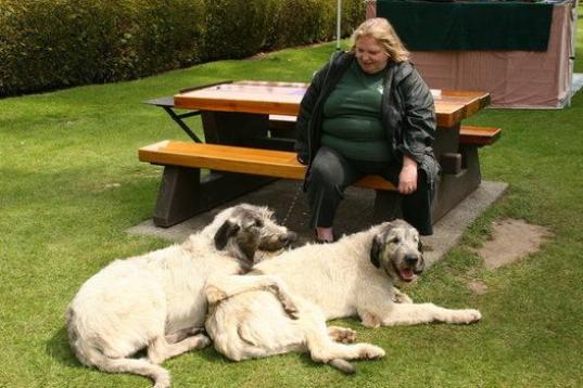 ¿Qué es más grande que un lobero irlandés? ¡Dos! La raza es conocida como el "gentil gigante". Los machos pesan un promedio de 54 kilogramos y miden casi 80 centímetros. Son los más altos de esta raza.