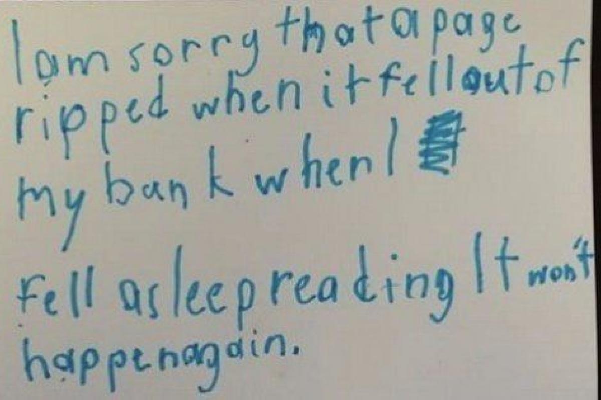 La conmovedora disculpa de un niño tras romper un libro de una biblioteca