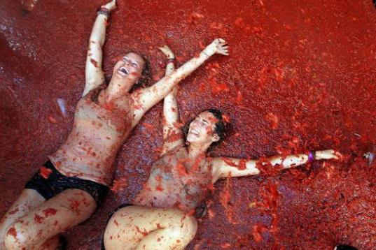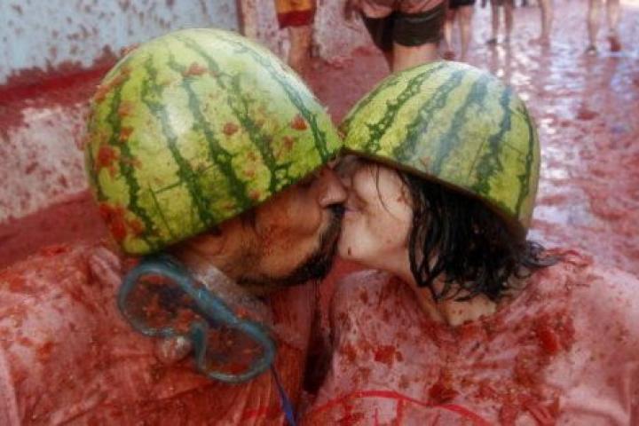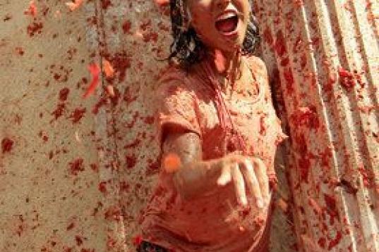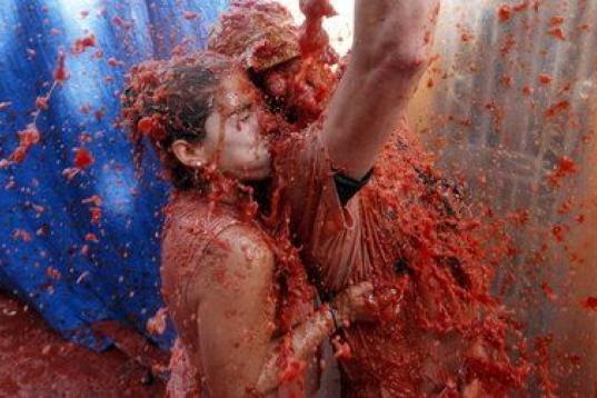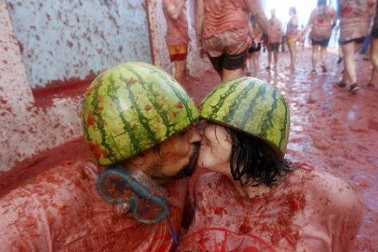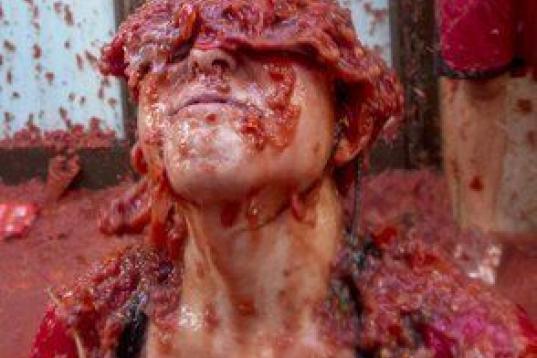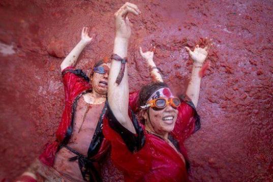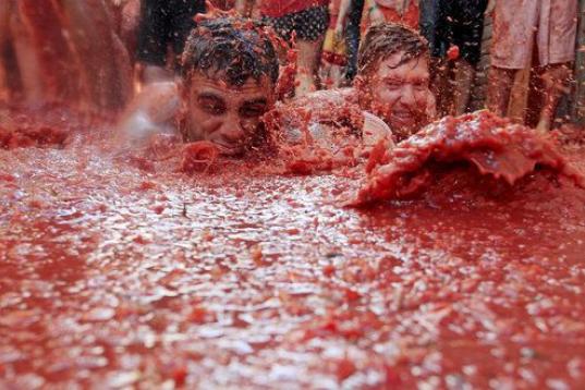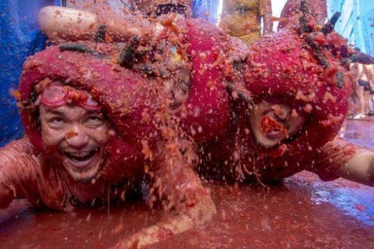 ¡La fiesta ha comenzado! La Tomatina de Buñol celebra este año su 70 aniversario. Más de 22.000 personas se han congregado en el pueblo valenciano para participar en la batalla roja, que ha contado esta vez con seis camiones —uno más que en 2014—, desde los que se han lanzado 150.000 kilos de tomates maduros.