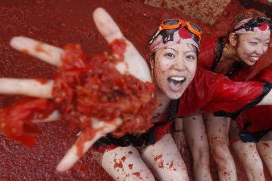 Un total de 96 nacionalidades se han reunido para celebrar esta fiesta. Españoles, británicos, indios, japoneses, americanos y australianos serán los más numerosos. Para aquellos que no hayan podido nadar en tomate este año, la organización ha creado el juego para móvil Tomatina Defense.