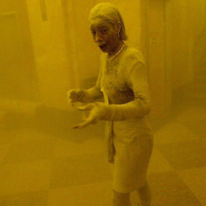 “Me encontraba cerca de un vestíbulo del edificio, donde un policía tiraba de la gente para ponerlos a salvo”, relató Honda con motivo del décimo aniversario de los atentados. “Conseguí entrar dentro de la torre y durante unos minutos todo estaba completamente oscuro. Entonces vi a una mujer completamente cubierta de polvo gris. Se notaba que iba muy bien vestida para el trabajo y tardó como unos minutos en reaccionar, hasta que se dirigió hacia el policía”.