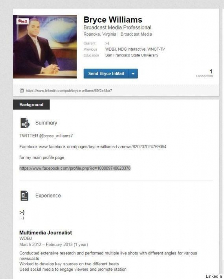 En su cuenta de Twitter, Bryce Williams escribió un mensaje antes de subir los vídeos en el que contaba cómo Adam Ward, cámara asesinado, se había quejado de él en la empresa tras trabajar juntos "sólo una vez".