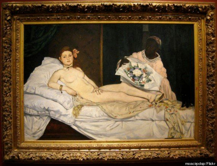 En esta época, los desnudos clásicos se habían integrado en el lenguaje del arte y los cuerpos pintados por Miguel Ángel habían pasado a ser no sólo aceptados, sino venerados. Desnudos reclinados y odaliscas surgían sin problema en los trabajos de Tiziano y Giorgione, aunque a la pelirroja de Manet fue considerada "vulgar" debido a su mirada firme y a su realista representación.