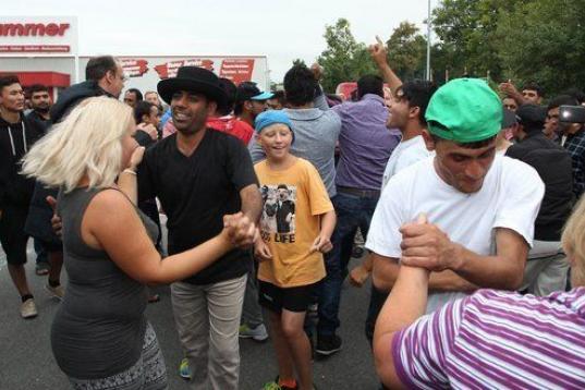 Pese a la amenaza nazi han hecho su fiesta de bienvenida a refugiados