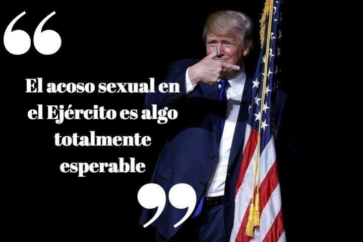 En mayo de 2013 Trump escribió en su cuenta de Twitter: "De 6.000 acosos sexuales no reportados en las fuerzas armadas, sólo 238 han sido sancionadas. ¿Qué otra cosa esperaban, si mezclaron a los hombres con las mujeres, genios?".