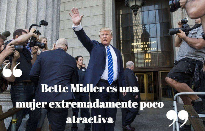Según Trump, Bette Midler (actriz y presentadora de TV de EEUU) es tan fea que es "ofensiva". Lo mejor de todo es que asegura que lo es tanto, que no lo dice porque quiere ser "políticamente correcto".