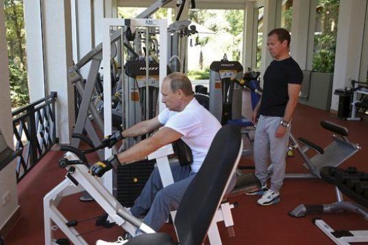 El Kremlin ha publicado unas imágenes del presidente ruso, Vladimir Putin, haciendo ejercicio en el gimnasio junto al primer ministro, Dimitri Medvedev, unas fotos que aparentemente pretenden resaltar la salud y fortaleza de Putin de cara a la opinión pública rusa.