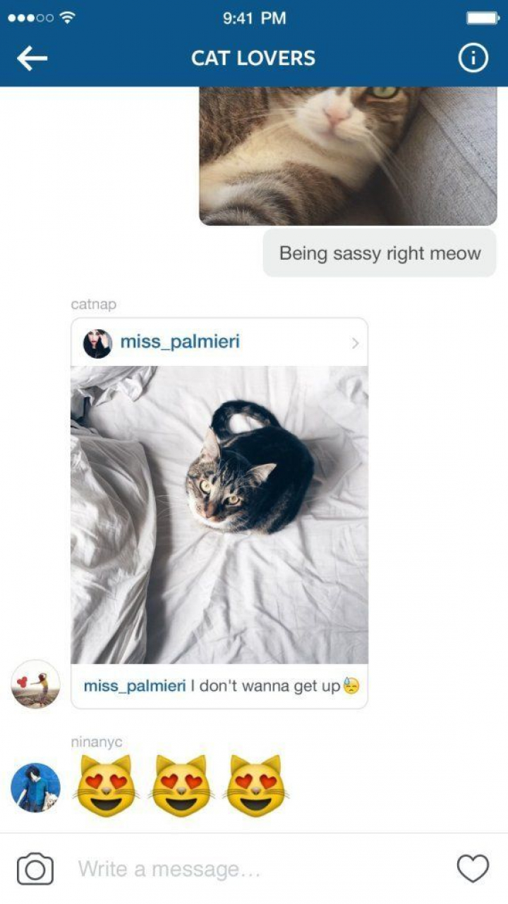 Esta mejora del servicio de comunicación en privado Instagram Direct, lanzado en diciembre de 2013, permite que desde ahora sus usuarios puedan intercambiar mensajes de texto, corazones —los Me gusta de esta red social—, emoticonos, fotos y vídeos, a modo de los chats de aplicaciones como WhatsApp.