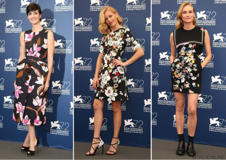 En la presentación ha habido una curiosa coincidencia. Las tres actrices presentes en el posado, Diane Kruger, Elizabeth Banks y la propia Vega, han aparecido vestidas prácticamente igual.