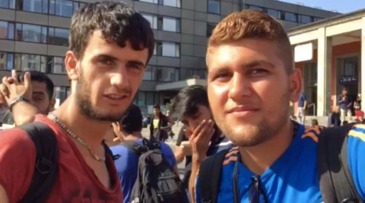 Dos refugiados (en la foto) debían continuar viaje hacia Berlín y Hamburgo. Como cuenta nuestro colega Jack Sommers, del HuffPost UK, resumían su periplo con un "¡Hungría mal! ¡Alemania bien!".