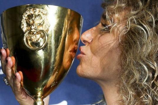 Con su Copa Volpi a la mejor actriz durante la ceremonia de clausura del 72º Festival de Cine de Venecia
