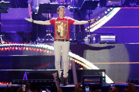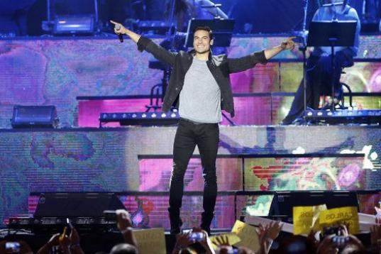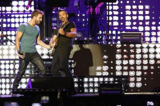 El madrileño fue uno de los invitados a esta gala entre las que también estuvieron Malú, Dani Martín, Miguel Bosé y Pablo Alborán. Ellos, como otros tantos, estaban anunciados en cartel, pero hubo sorpresas sobre el escenario: una fue la actuación no prevista de Maná, que cantó Labios Compartidos y otra fue esa canción multitudinaria.