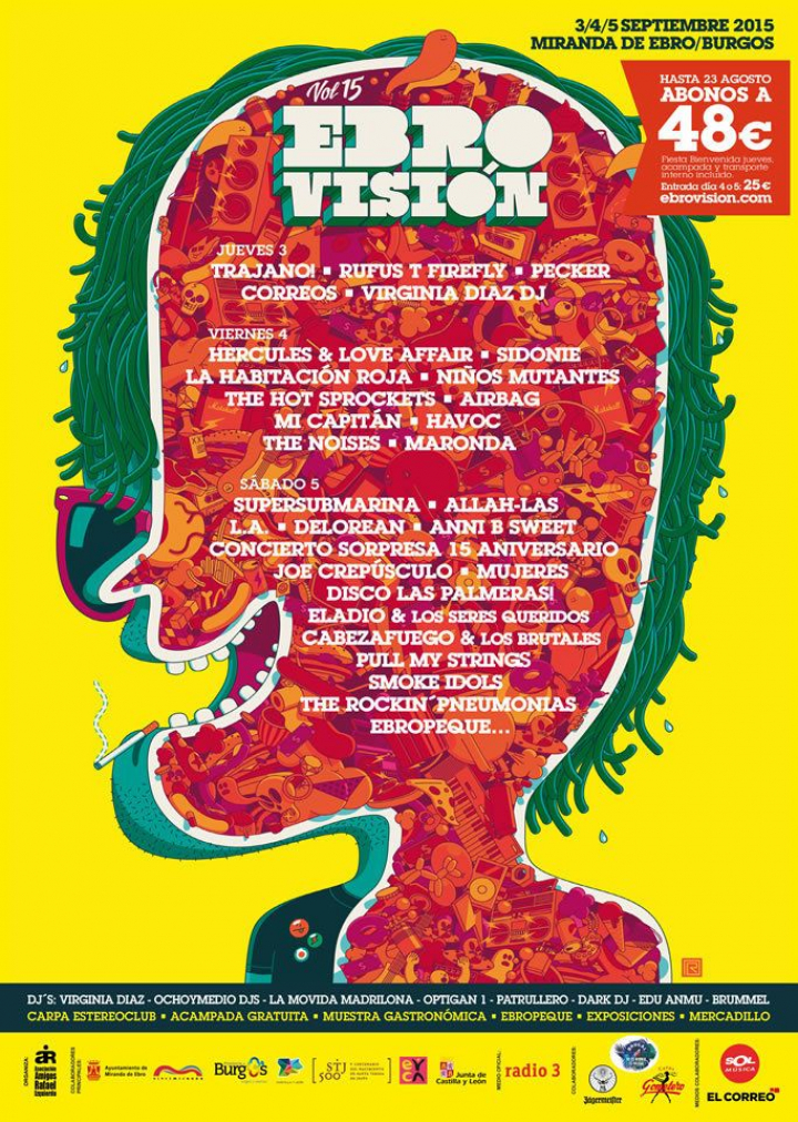 Eran un grupo de amigos de Miranda de Ebro (Burgos) que invertían su tiempo libre en una asociación cultural con la que animar el ocio de sus vecinos. Un día, mientras estaban frente a uno de los escenarios de Festival Internacional de Benicàssim pensaron: "¿Por qué no montamos nuestro propio FIB en casa?". La disparatada idea no sólo se hizo realidad; también logró crecer y sobrevivir en el tiempo. En sus quince años de vida, el Festival Ebrovisión ha visto estallar la burbuja de los festivales musicales y desaparecer citas mucho más ambiciosas que la suya. La humildad y el trabajo desinteresado son parte de su secreto para lograr llevar a gente como Vetusta Morla, Mando Diao o Teenage Fanclub a una localidad de menos de 35.000 habitantes. Con sobriedad y capacidad de lucha sobreviven a mil batallas, como su paisano el Cid Campeador. En esta edición, que se celebra del 3 al 5 de septiembre, esperan recibir a 17.000 personas y en ella ofrecerán un concierto sorpresa que será "algo que no se podrá ver en ningún otro sitio", cuenta Ramiro Molinero Rami, uno de los fundadores, a El Huffington Post.