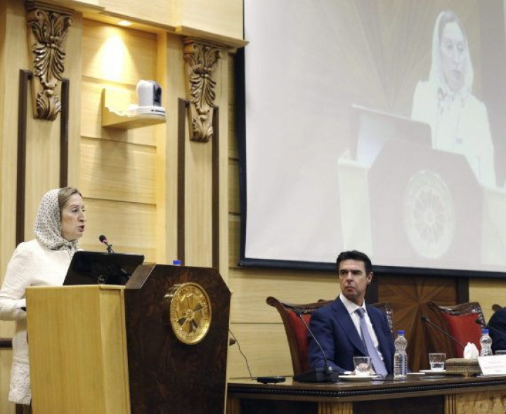 En esta ocasión le ha pasado algo similar a la ministra de Fomento, que encabeza junto al ministro de Asuntos Exteriores y Cooperación, José Manuel García-Margallo, y el de Industria, Energía y Turismo, José Manuel Soria, la gran delegación oficial que se ha desplazado a Irán para recuperar las relaciones con el país persa, donde es obligatorio el uso del velo.