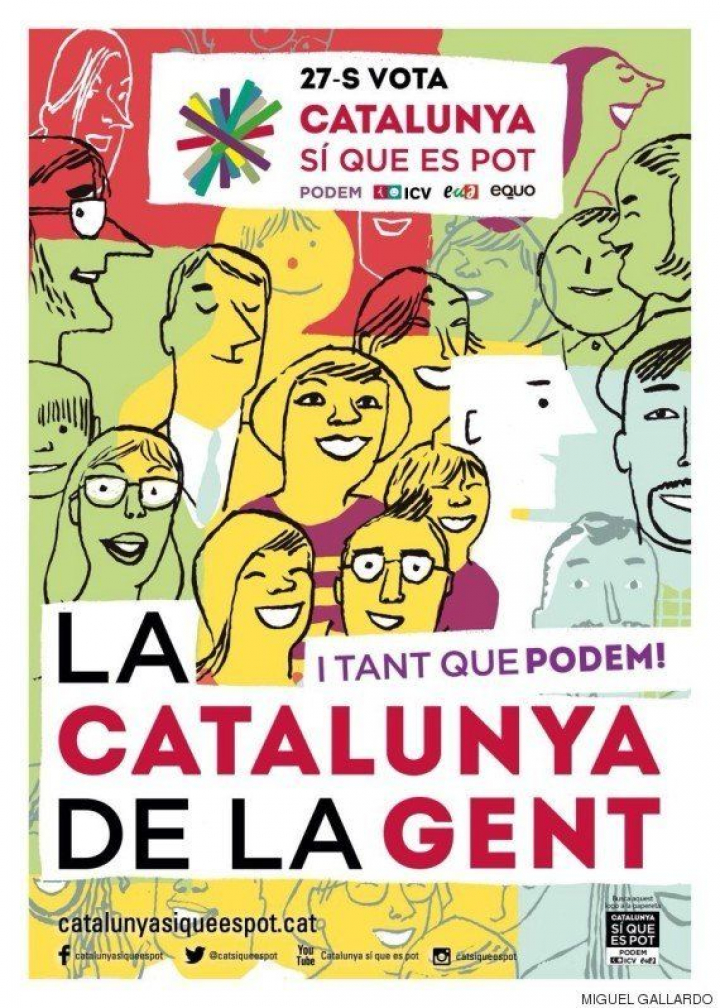 La coalición catalana de izquierdas 'Catalunya Sí que es Pot', compuesta por las formaciones Iniciativa per Catalunya Verds (ICV), Esquerra Unida i Alternativa (EUiA), Podemos y Equo, ya tiene cartel para la campaña de las elecciones catalanas que tendrán lugar el próximo 27 de septiembre.