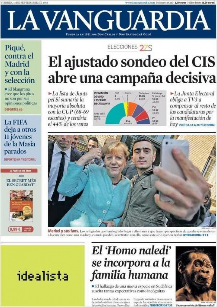 En cualquier caso, como constata un sondeo para el Frankfurter Allgemaine, los alemanes están satisfechos con la política de Merkel que ella misma ha resumido en una frase: "La fuerza sin dureza". La canciller aparece esta mañana en numerosas fotos en las que posa sonriente para los selfies que hacen los refugiados.