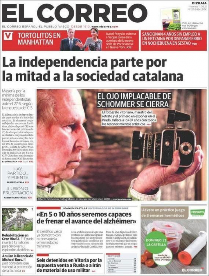 Y quizá por proximidad, en Francia. Le Figaro y Libération tienen enviados especiales en Barcelona. El primero anuncia "una marcha histórica por la independencia", y el segundo, "la fiesta nacional cataliza las esperanzas de independencia".