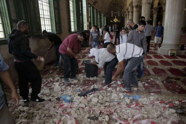 Testigos musulmanes afirman que la policía entró en la mezquita, el tercer sitio más sagrado del Islam, causando daños. Su denuncia se ha confirmado con las imágenes posteriores recogidas por la prensa internacional.