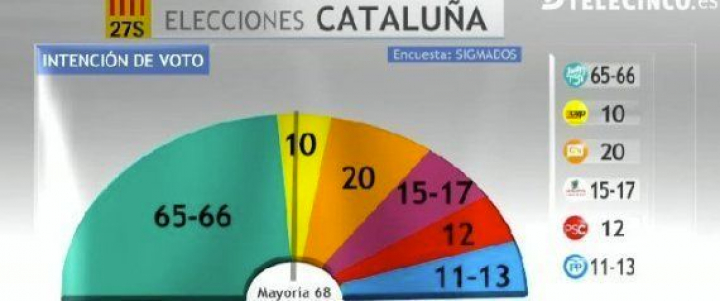 A veces las encuestas aciertan y otras no, pero en este caso, de momento, las que se están publicando dan resultados tan diferentes... O mayoría del independentismo o en las manos de Podemos. Según un sondeo de Sigma Dos para Telecinco, la lista unitaria independentista de Junts pel Sí rozaría la mayoría absoluta con entre 65 y 66 escaños. Sin embargo, según otro sondeo publicado por La Razón y elaborado por NC Report, la mayoría del Parlament estaría en manos de la lista apoyada por Podemos, Catalunya Sí que es Pot. Pero bueno, el dato es el dato y nosotros reproducimos ambos.