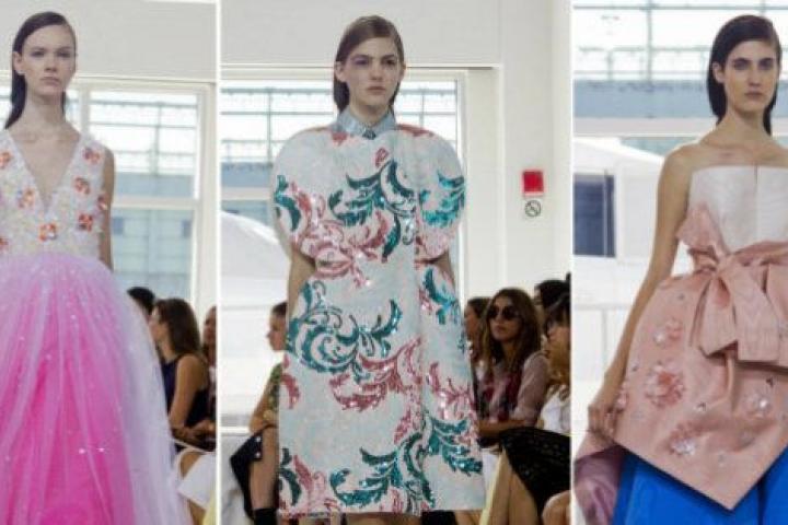 En su apuesta siempre hay mucho riesgo volumétrico y esta no es una excepción. "El nuevo volumen [de esta colección] es el volumen ánfora", explica, mientras que en cuestión de colores no discrimina y en materiales sigue fiel a la organza, las gasas de seda y los linos. De lo gitano, entonces, queda algo de itinerante o incluso de circense, y el desfile estuvo acompañado de un vals al acordeón y el contrabajo. De Klimt, los vestidos abarrotados de motivos repetidos.