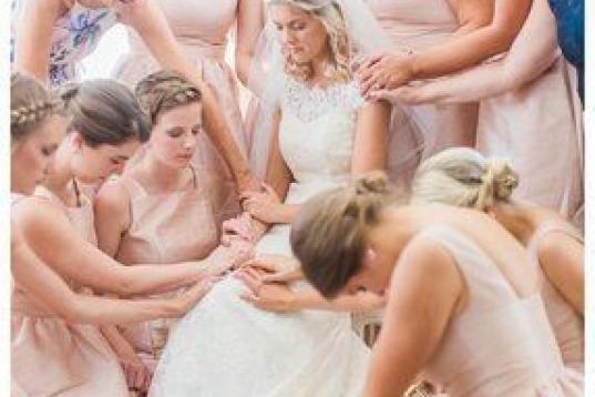 "Todas las damas de honor y las madres de la novia y del novio se reunieron alrededor de esta novia y rezaron por ella. Fue auténtico, dulce y poderoso. El hecho de que cada persona se tomara el tiempo para recitar su pequeña oración lo hizo ...