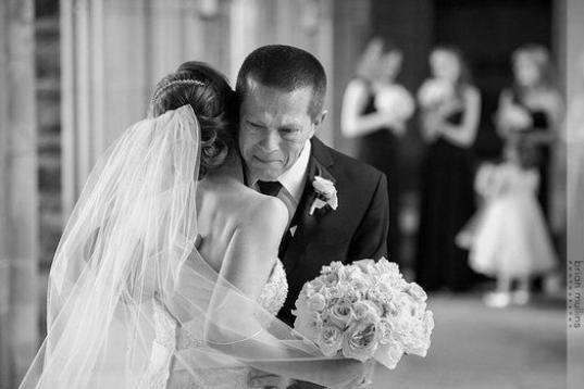 "Pensamos que es importante inmortalizar el primer momento en el que los novios se ven el uno al otro. Sin embargo, como padre que soy, esta es la única foto que DEBO conseguir: cuando el padre ve a su hija antes de la ceremonia", - Brian Mullins