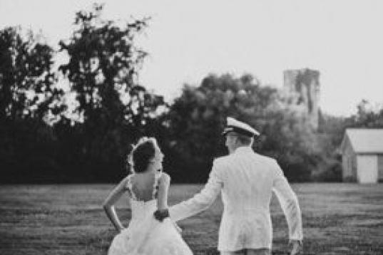 Tras la ceremonia en la Academia Naval, los novios decidieron ir corriendo hacia el sol en un momento de espontaneidad y alegría" - Jeremy Harwell