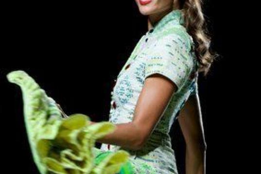 Alicia Barros fue Miss España 1965 y tiene 70 años. Cerró el desfile de Andrés Sardá entre grandes aplausos, bastantes más que las supuestas misses del mundo que se vieron en el resto del desfile.