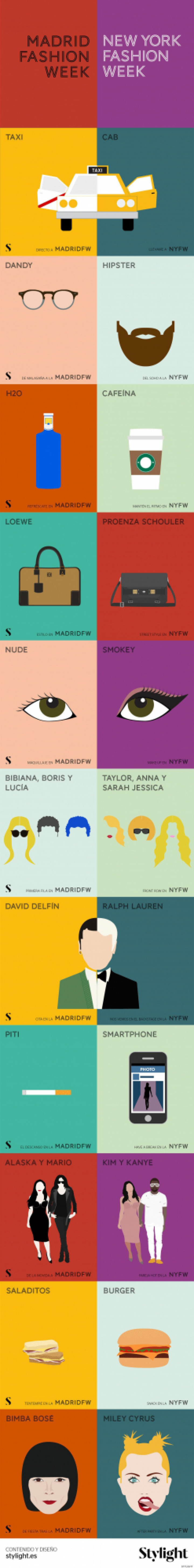 La de Nueva York es la cita más longeva: su primera edición fue en 1943, en plena II Guerra mundial, mientras que la de Madrid no nació hasta 1985, 42 años después. Los amantes de la moda no quitan ojo a ninguna de estas dos pasarelas que, aunque lógicamente no son comparables en cuanto al número de desfiles que acogen, sí tienen elementos en común. Eso sí, cada una fiel a su estilo —una más cañí; la otra, más cool—, como se puede ver en esta infografía elaborada por Stylight: