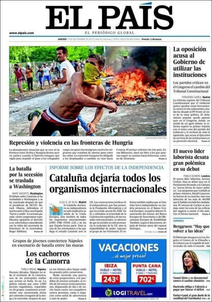 "Cataluña no podría volver a ingresar en la Unión Europea "; así lo señala El País, apoyándose en un informe de la Fundación Alternativas coordinado por el exsecretario de Estado para la Unión Europea, Diego López Garrido, y que se apoya en la Constitución española y en los tratados internacionales.