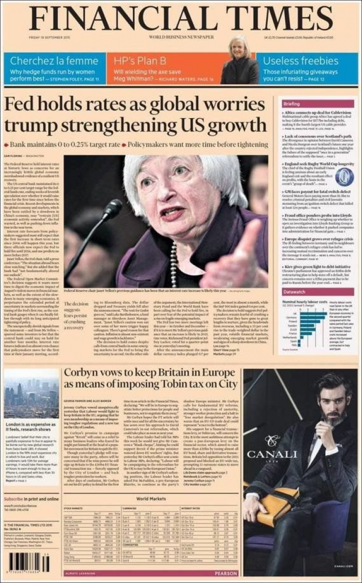 Sobre Europa escribe Jeremy Corbyn, quien, destaca el Guardian, ha anunciado que hará campaña para que Reino Unido siga en la Unión Europea. El nuevo líder laborista defiende en el diario de la City que "la ortodoxia ha fracasado y Europa necesita un nuevo enfoque económico".