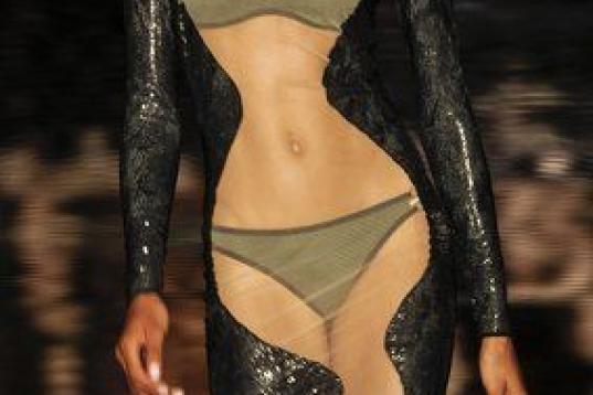 Ligueros en tonos "nude", "bodys" de encaje, monos de lentejuelas y piezas con sugerentes transparencias, muestran el lado más salvaje y sexy de la mujer Andrés Sardá.