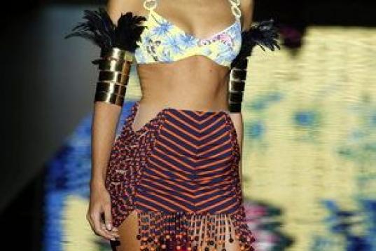 Sujetadores con estampado de leopardo, trikinis con plumas de avestruz, falditas playeras con flecos y abalorios tribales, son las propuestas más recatadas y contenidas.