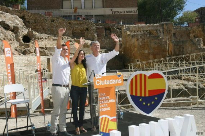 Inés Arrimadas, junto a Albert Rivera y Matías Alonso, en Tarragona.