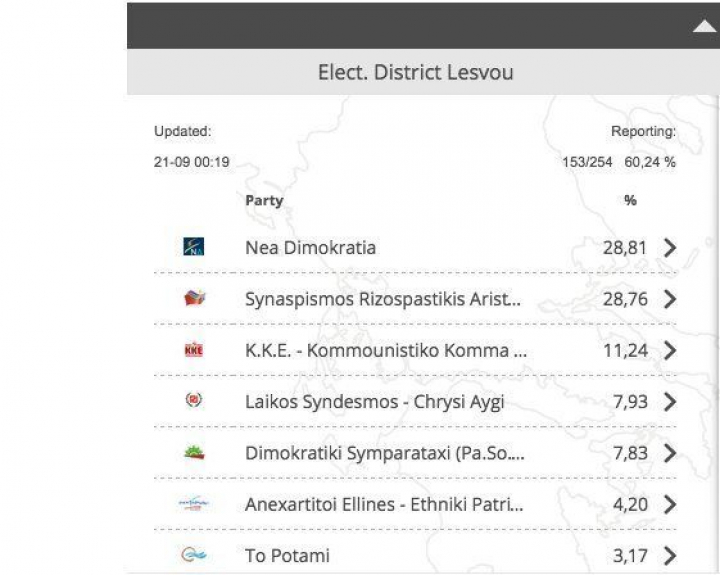 Este es el porcentaje de votos que han obtenido en la isla de Lesbos: