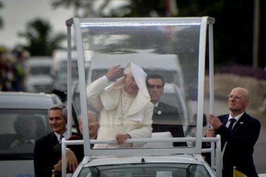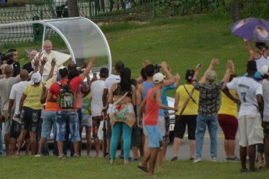 El papa ya está en Cuba. Anoche tuvo su primer baño de entusiasmo, durante los 45 minutos que duró su traslado del aeropuerto a su alojamiento, y este domingo será el día de su misa principal. Francisco oficiará este domingo su primera misa en Cuba en la Plaza de la Revolución de La Habana, bajo la mirada de un retrato de Ernesto Ché Guevara, en una intensa jornada en la que se reunirá con el presidente Raúl Castro, mantendrá encuentros con religiosos y con jóvenes y es posible, según el Vaticano, que también vea al exgobernante Fidel.