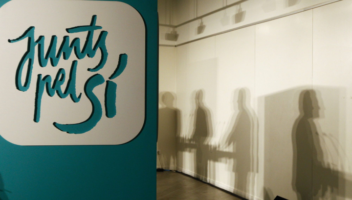 Quique García, de la agencia Efe, firma la foto que hemos elegido como imagen del día. Lo tiene todo, simbólicamente hablando: aparecen las sombras del presidente de la Generalitat y candidato numero 4 por 'Junts pel Sí', Artur Mas, (1d); el candidato numero 5 y líder de ERC, Oriol Junqueras (2d); y el cabeza de lista de la formación, Raül Romeva (3d). Son las sombras del independentismo catalán...