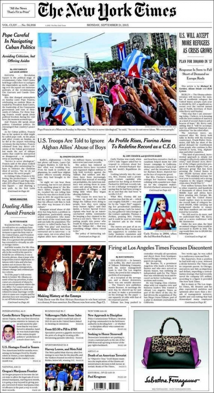 Sin embargo, y pese a que "el papa dio misa en el corazón político de Cuba", como señala el New York Times, Francisco advirtió sobre las derivas de la ideología, resume Financial Times. De hecho, precisa El País, ignoró a los disidentes en su homilía en La Habana antes de entrevistarse durante 40 minutos con Fidel Castro, como da fe una foto que se asoma a las primeras páginas.