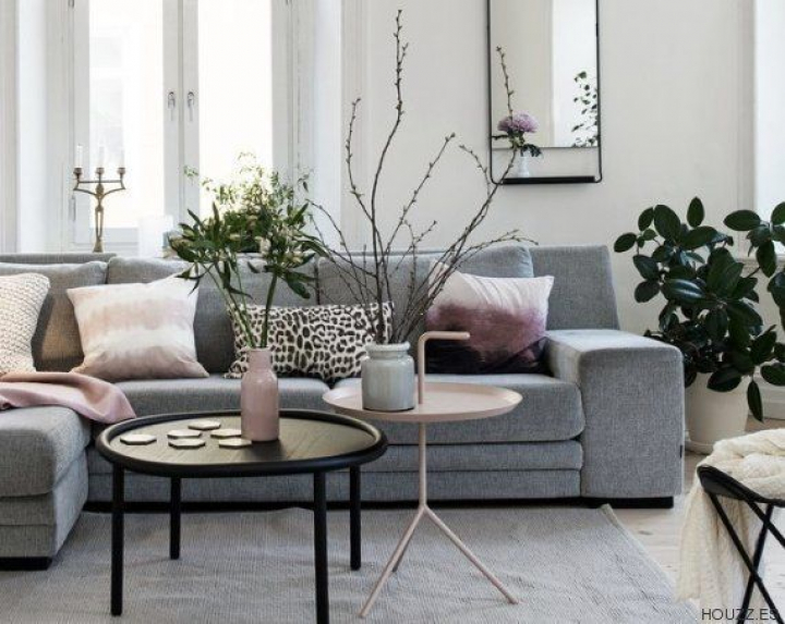 La distancia recomendable entre el sofá y la mesa de centro debe ser de 40 centímetros. Para que el espacio quede bien proporcionado, la mesa de centro debería medir un metro menos que el largo del sofá. En cuento a la altura, de 35 a 45 centímetros. Si sitúas el sofá en la pared más larga, coloca dos mesillas auxiliares separadas 20 centímetros respecto a los brazos del sofá.