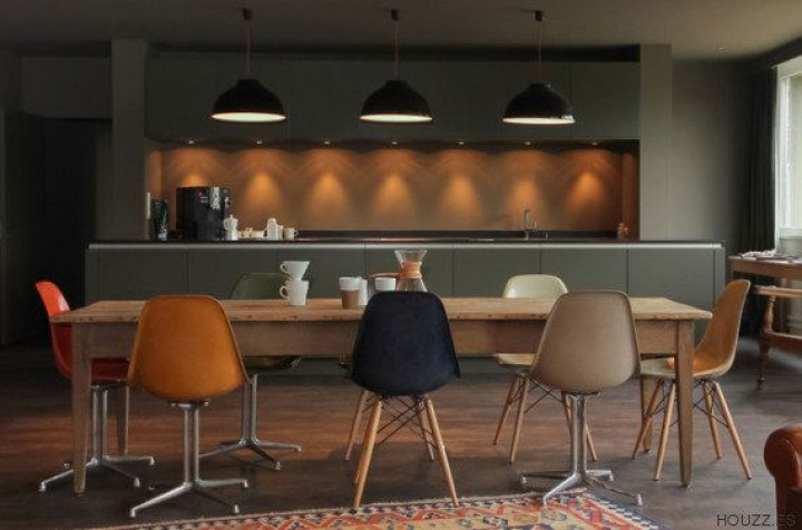 Si no utilizas este espacio a diario puedes buscar otras opciones al clásico comedor. Véase una mesa estrecha con alas abatibles que pueda convertirse en una funcional pieza en cuanto la necesites. Las mesas extensibles son otra alternativa a los comedores estándar. En el caso de los espacios abiertos en los que salón, comedor y cocina comparten la misma planta, el office se convierte en el comedor principal de la vivienda. Respeta las mismas medidas y claves de circulación y disfrutarás más del ambiente.