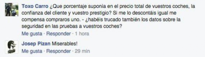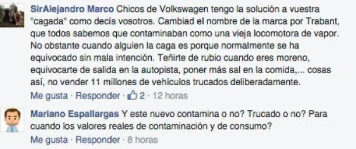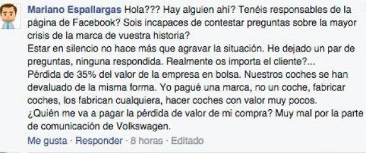 Ese silencio comienza a cabrear a sus clientes. Un vistazo a la página de Facebook de Volkswagen España lo certifica. Los comentarios de sus seguidores en las redes sociales son bien descriptivos.
