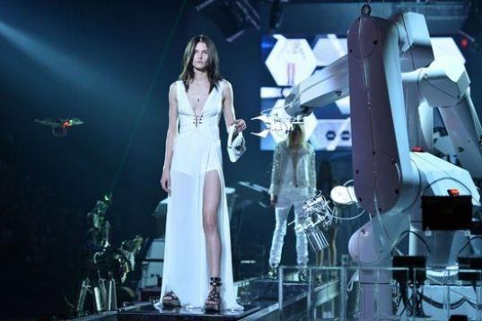 Sin embargo, el diseñador alemán Philipp Plein ha optado por una puesta en escena algo distinta en la Semana de la Moda de Milán, donde ha mostrado su última colección. El creador se ha centrado más en la tecnología, y por ello ha colocado robots a lo largo de la pasarela. Estos iban proporcionándoles a las modelos los distintos accesorios (bolsos, gafas de sol…) con los que acompañar la ropa y completar su look. Por el escenario, además, volaban drones, y los robots se dedicaban a tareas extra como ¡tocar la batería!