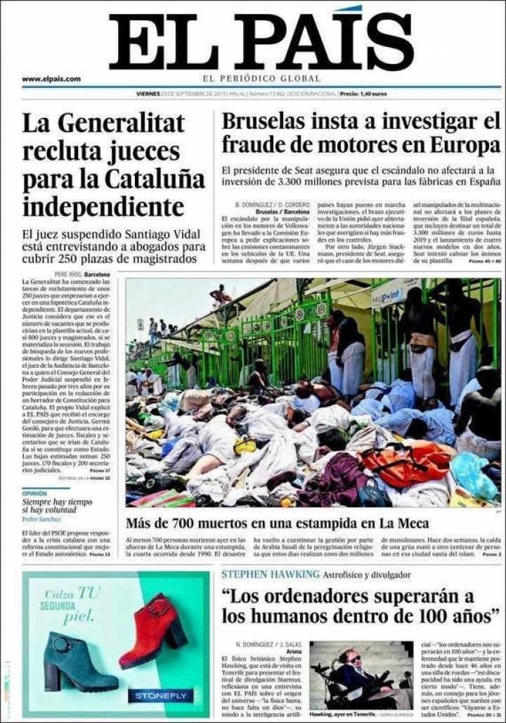 Como la que lleva en su apertura El País: "La Generalitat recluta jueces para la Cataluña independiente. El juez suspendido Santiago Vidal está entrevistando a abogados para cubrir 250 plazas de magistrados". El encargo, reconocido por el propio magistrado, lo recibió del consejero de Justicia, Germà Gordó.