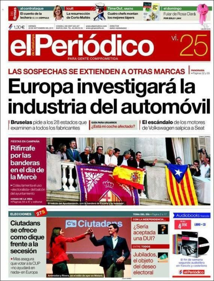 Desde luego, la imagen de esta mañana en la prensa es ese "rifirrafe" por las banderas en el balcón del Ayuntamiento de Barcelona, que refleja la polarización de los discursos...