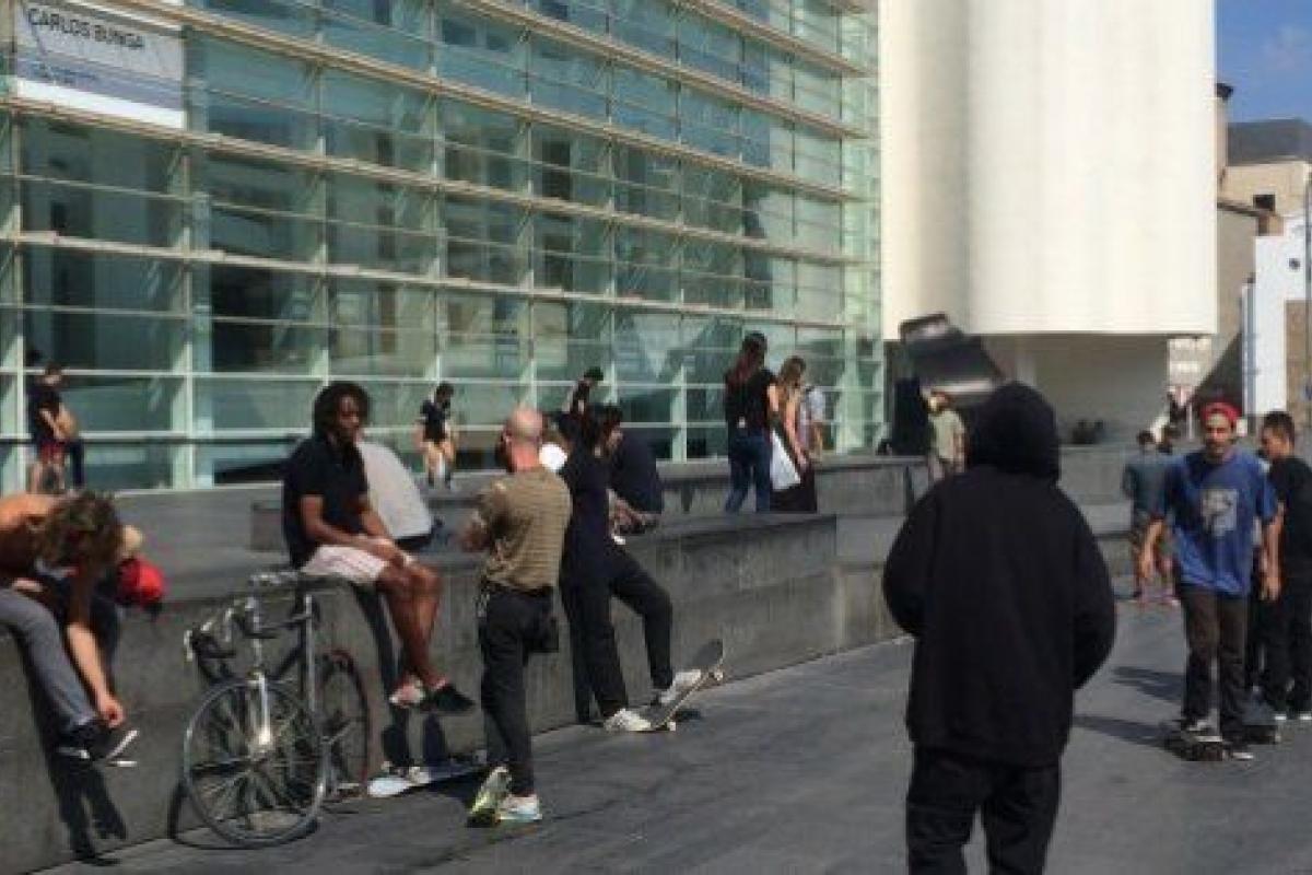 Un día después del 27-S, la ciudad vuelve a su rutina, a sus escenas. Barcelona es ahora en color, con brillos digitales, de filtro de Instagram. La plaça dels Angels -donde está el museo- sufre los saltos de los skaters y las pisadas de los viandantes que corren haciendo recados o a recoger a sus hijos y nietos en la Escola Vedruna, mientras los estudiantes de la facultad de Geografía e Historia se toman una cerveza en una terraza. Por allí pasa también el eurodiputado Ramon Tremosa (Convergència) camino de un debate. Instantáneas de 2015.