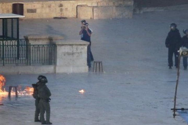Los palestinos han arrojado "piedras, fuegos de artificio y cócteles molotov" desde el interior, según ha dicho a través de un comunicado de la policía, en el que ha precisado que éstos objetos fueron repelidos por una suerte de nueva "pantalla" desmontable llevada al lugar por los agentes.