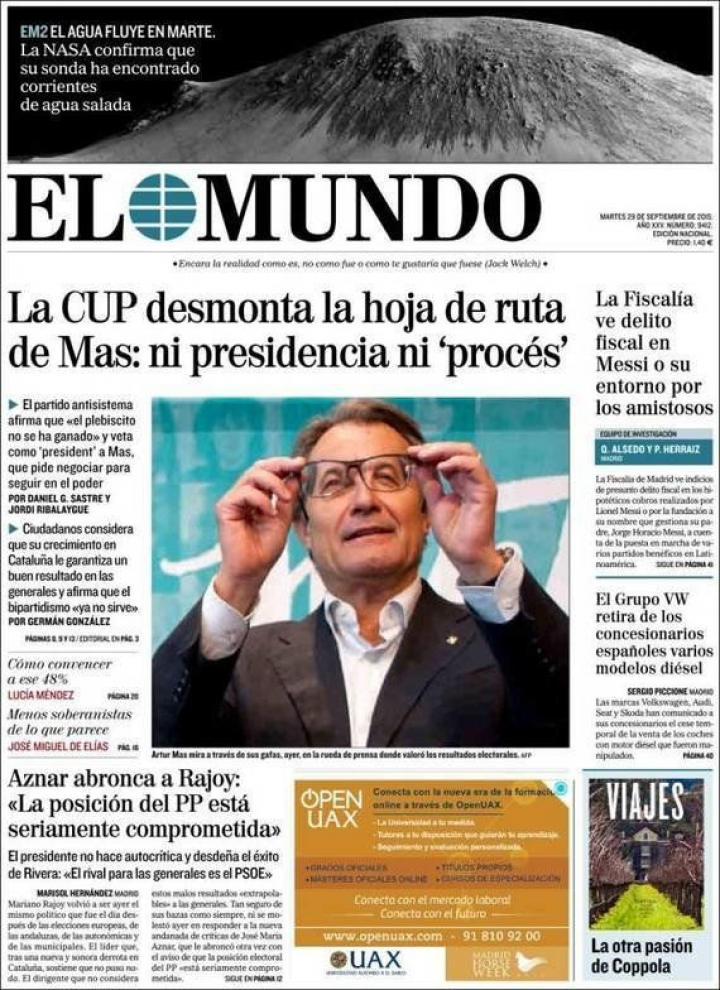 Y a falta de respuestas aquí en la Tierra a la situación en Cataluña y Siria, los diarios miran hacia Marte...